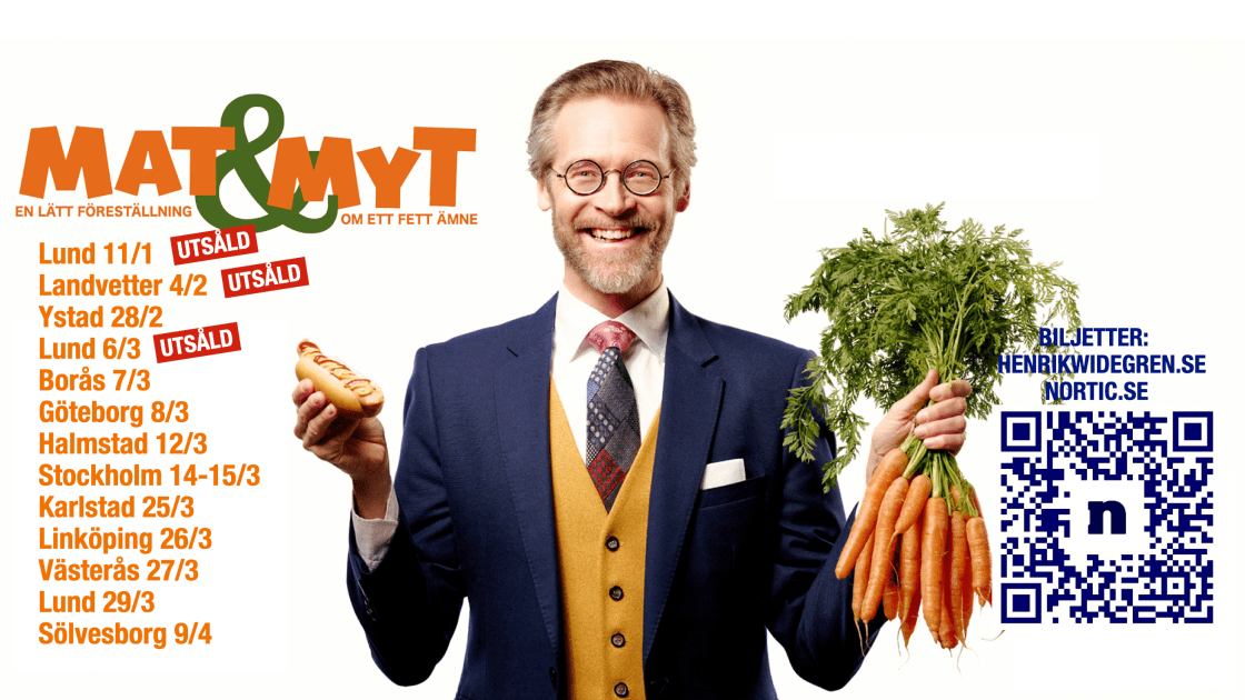 Min soloföreställning Mat & Myt fortsätter att spelas! Det kom så mycket folk i höst att jag fortsätter turnén i vår. Biljetterna till Lund, Borås, Göteborg, Halmstad, Linköping och Västerås säljs här eller via QR-koden nedan.