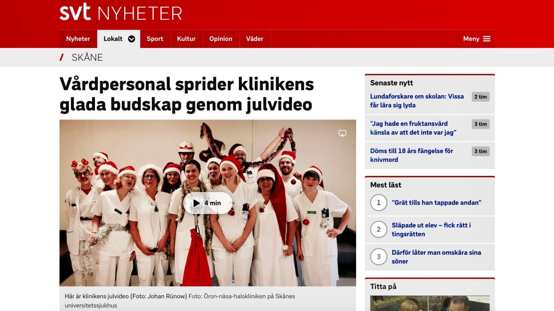 SVT nyheter skriver några rader om vår julvideo. Jag passade på att göra reklam för vår kära klinik! Här är videon.