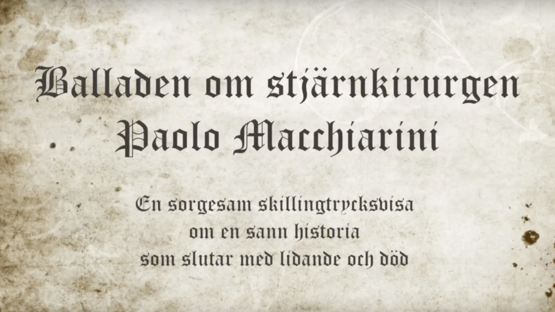 Jag skriver sällan allvarliga låtar. Detta är ett undantag. Balladen om stjärnkirurgen Paolo Macchiarini, ett modernt skillingtryck. Här kan ni läsa och lyssna på Dagens Medicin. Den finns även på min youtubekanal.