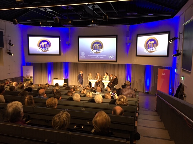 Igår genomförde SVT i samarbete med Lunds Universitet en Fråga Lund special för att samla in pengar till Musikhjälpen. Här är några bilder och en länk till den trevliga paneldiskussionen i Palaestra.
