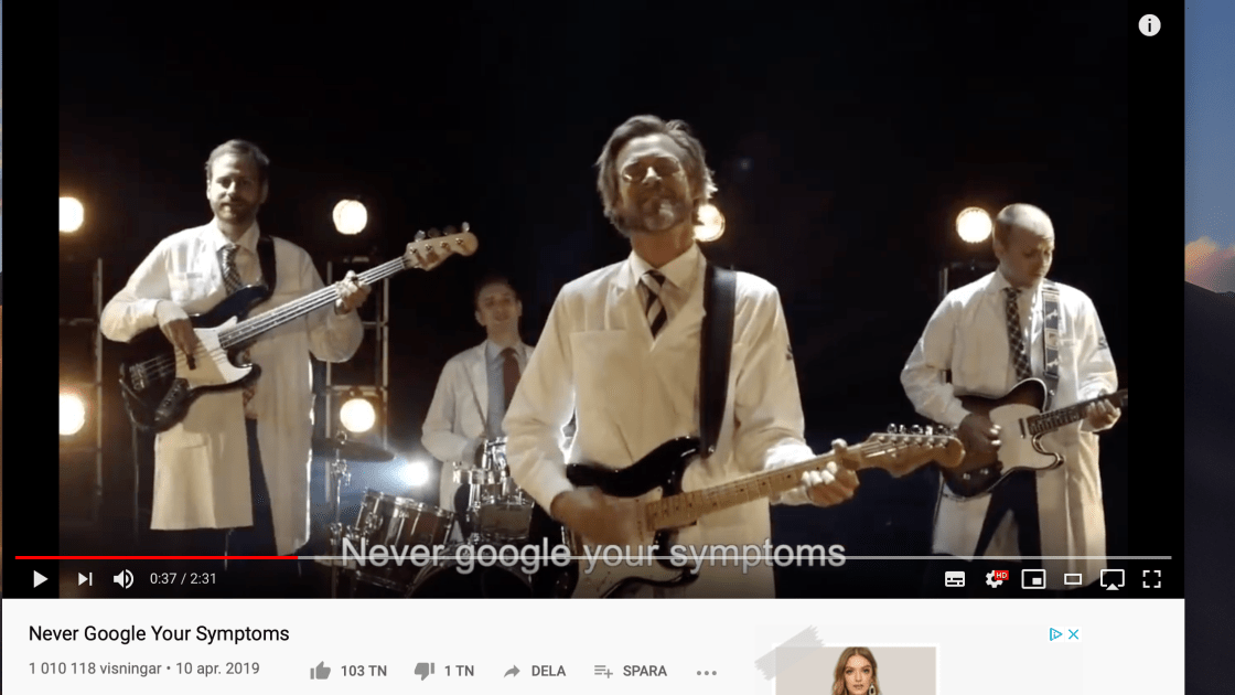 Never Google Your Symptoms now has 1 million views on YouTube! (And more than 3 million on Facebook) Subtitles in 16 languages and comments from all over the world.