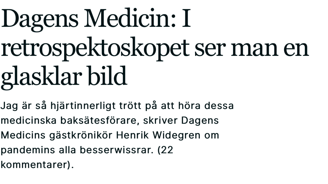 Ny krönika av henrikwidegren den Jan 30, 2021Jan 30, 2021 Här kan ni läsa en krönika om retrospektoskopi. Det används mycket nuförtiden! Dela detta: Klicka för att dela på X (Öppnas i ett nytt fönster) X Klicka för att dela på Facebook (Öppnas i ett nytt fönster) Facebook Gilla Laddar in … Inläggsnavigering Föregående: The Anti-vaxxerNästa: Text Message from the ER – Live from the hospital