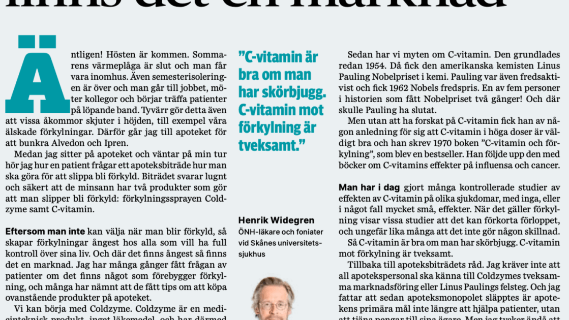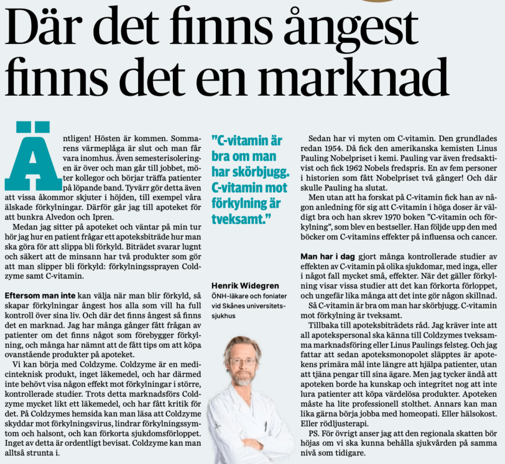 Där det finns ångest finns det en marknad av henrikwidegren den Okt 08, 2024Okt 08, 2024 Här är några rader om förkylningar och apotekens dåliga råd! Dela detta: Klicka för att dela på X (Öppnas i ett nytt fönster) X Klicka för att dela på Facebook (Öppnas i ett nytt fönster) Facebook Gilla Laddar in … Inläggsnavigering Föregående: I nästa OS vill jag se läkarstafett och värdegrundsskytteNästa: Intervjuer