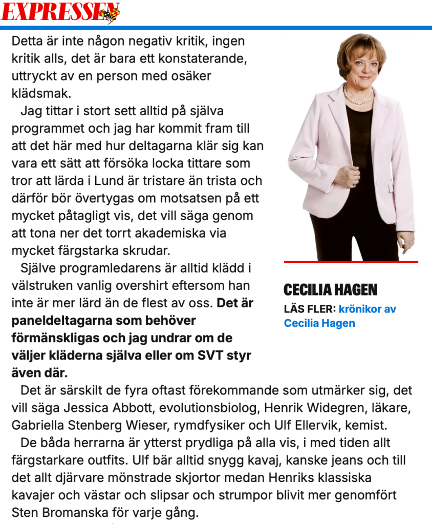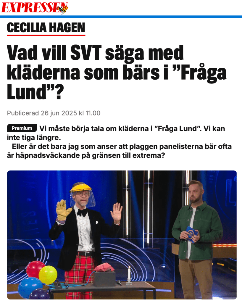 Och för att besvara Cecilias fråga: Ja, vi i panelen i Fråga Lund väljer själva vad vi vill ha på oss (Liksom att vi själva bestämmer vad vi vill säga) 😊