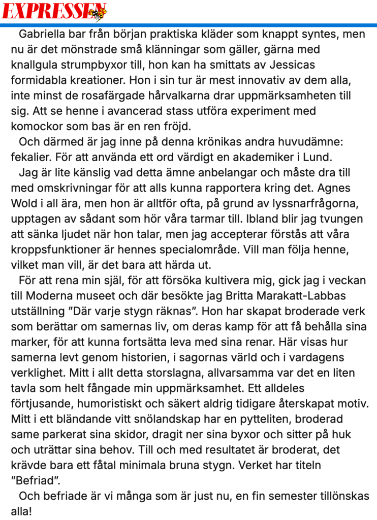 Så trevligt att Cecilia Hagen uppskattar våra kläder i Fråga Lund! Här är krönikan i Expressen.