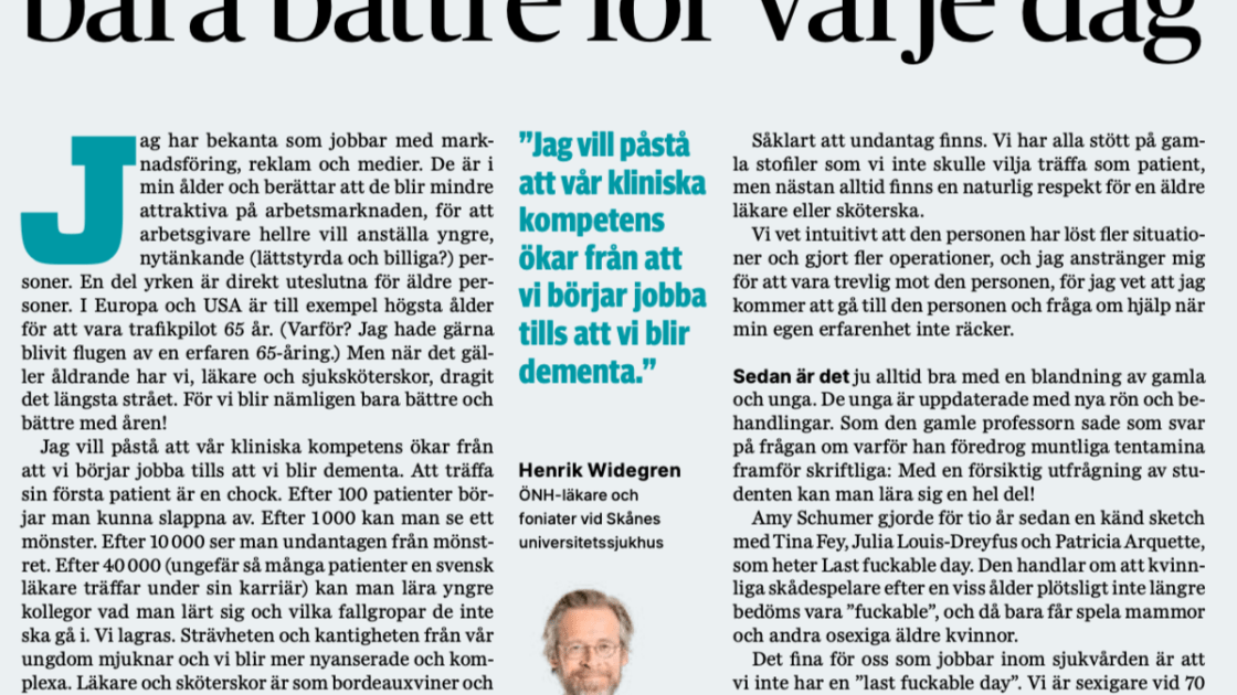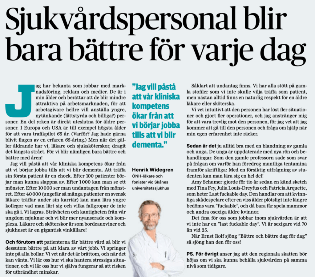 Länk till krönikan i Dagens Medicin: https://www.dagensmedicin.se/opinion/gastkronika/sjukvardspersonal-blir-bara-battre-och-battre-dag-for-dag/