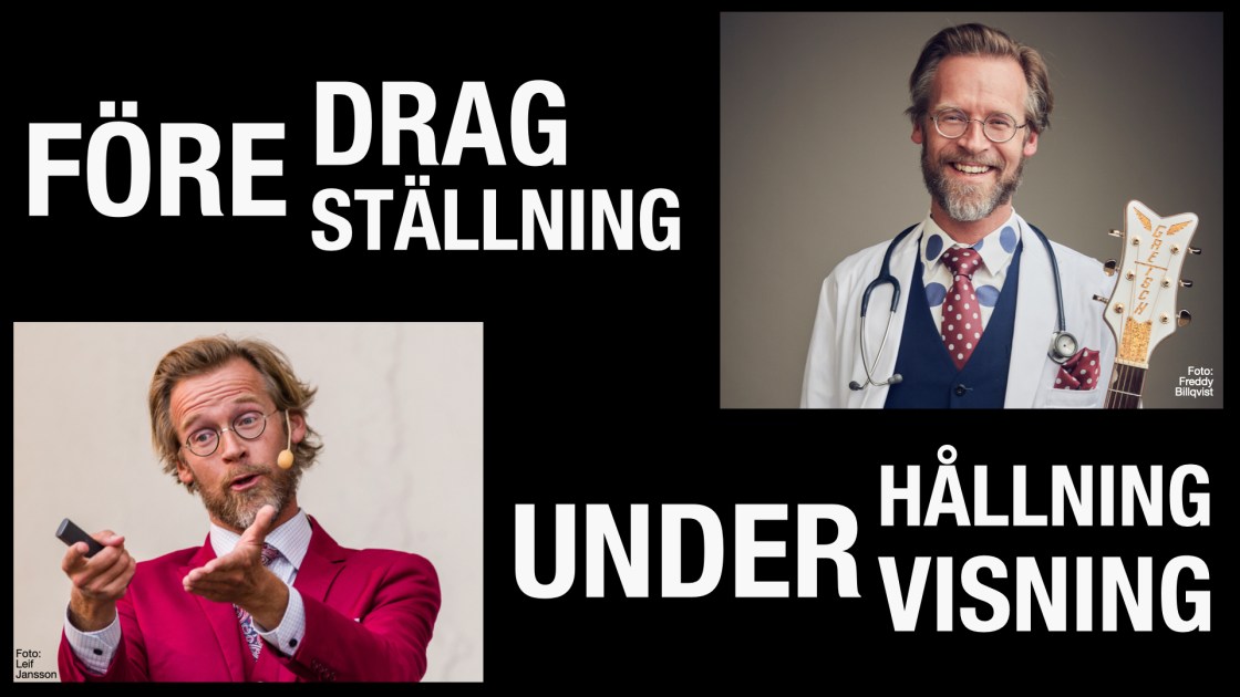 De sex föredragen här nedan är populärvetenskapliga, musikaliska, komiska och blandar prat med sång. Man kan säga att de är lika mycket föredrag som föreställningar (Quiz & fniss på remiss är främst ett quiz). Gitarren är alltid med (om ni absolut inte vill det!) Föredragen vänder sig till både allmänhet och sjukvårdspersonal. Videoklippet nedan kommer från en föreställning på Stadsteatern i Lund.